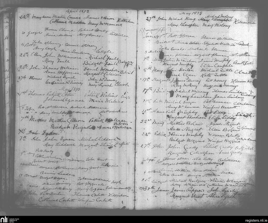 O'Callaghan's Mills; County of Clare; Diocese of Killaloe. Baptisms, Apr. 1873 to July 1873
