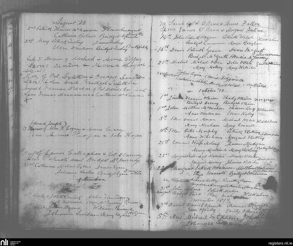 O'Callaghan's Mills; County of Clare; Diocese of Killaloe. Baptisms, July 1873 to Nov. 1873