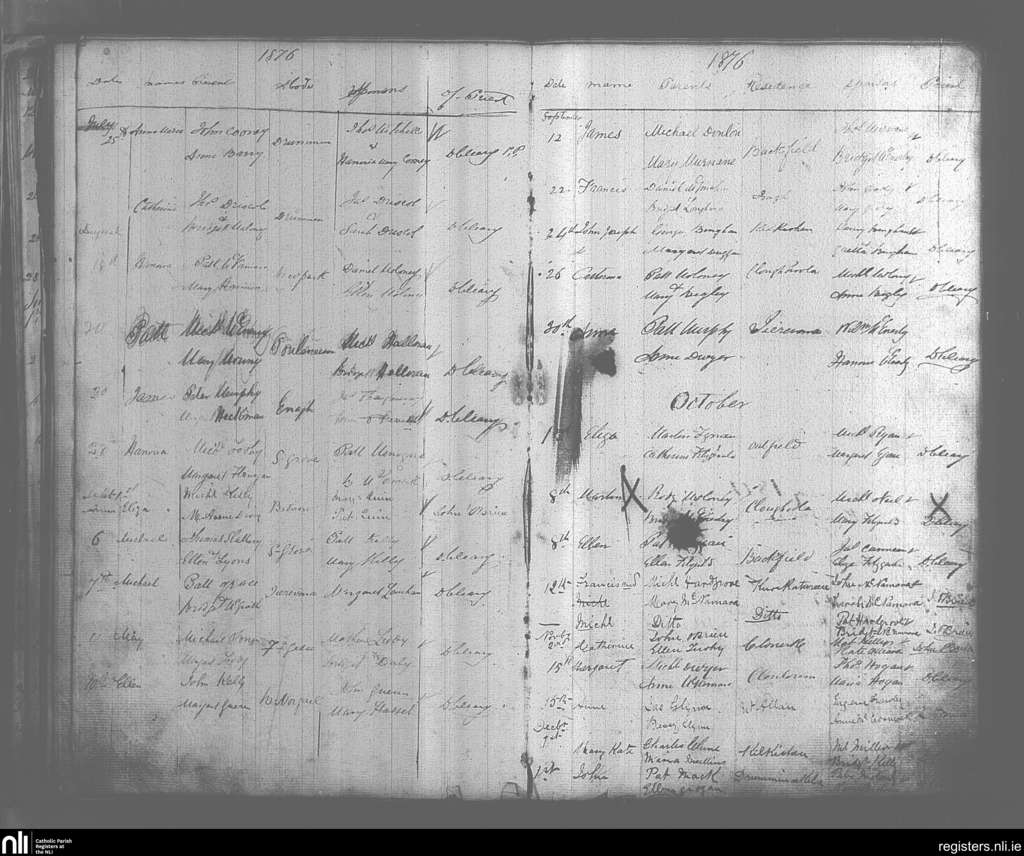 O'Callaghan's Mills; County of Clare; Diocese of Killaloe. Baptisms, July 1876 to Dec. 1876