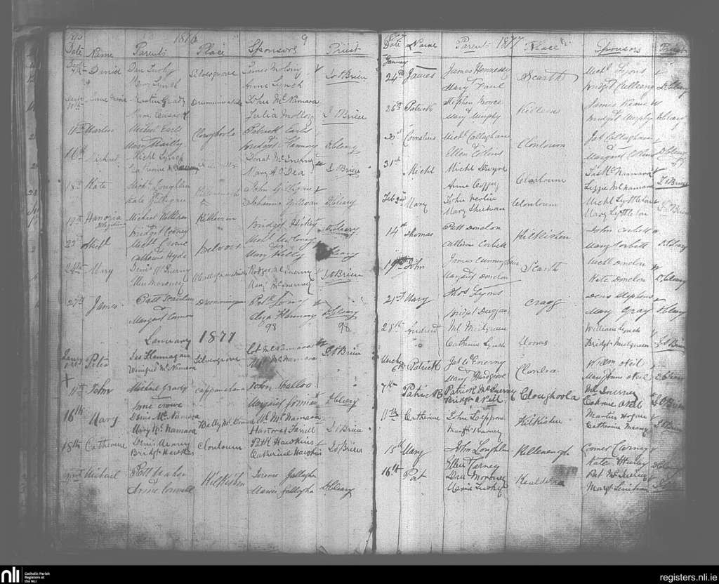O'Callaghan's Mills; County of Clare; Diocese of Killaloe. Baptisms, Dec. 1876 to Mar. 1877
