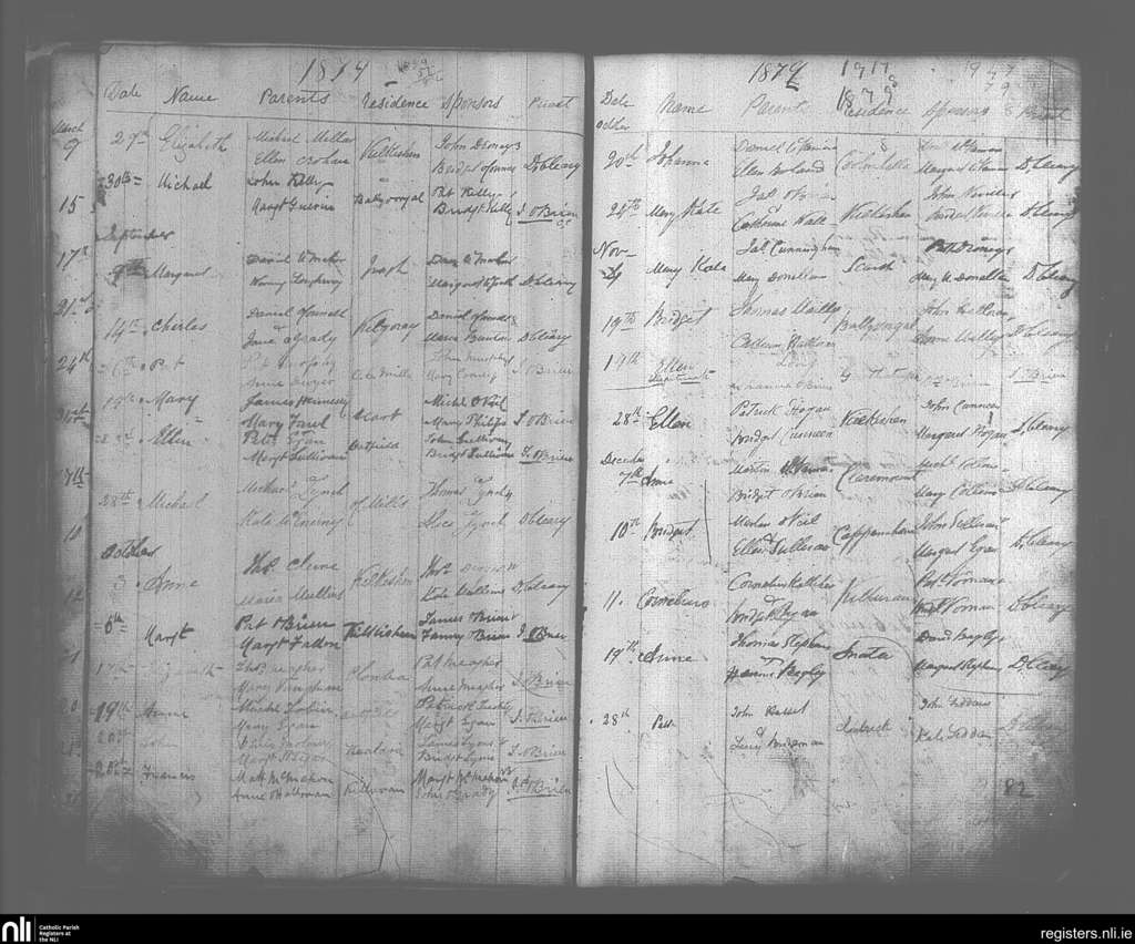 O'Callaghan's Mills; County of Clare; Diocese of Killaloe. Baptisms, Aug. 1879 to Dec. 1879