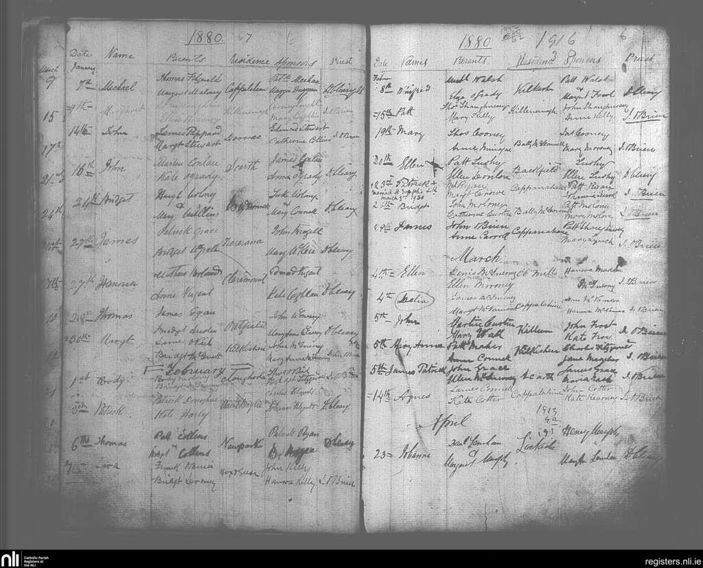O'Callaghan's Mills; County of Clare; Diocese of Killaloe. Baptisms, Marriages, Jan. 1880 to Mar. 1930