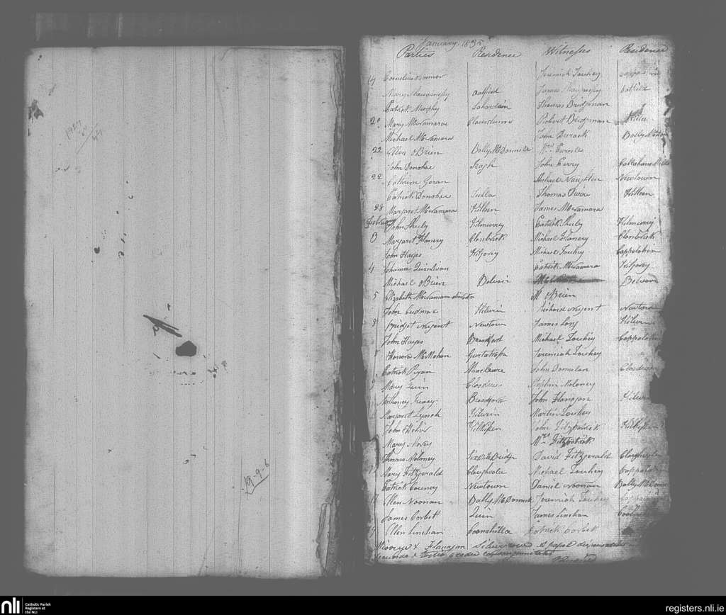 O'Callaghan's Mills; County of Clare; Diocese of Killaloe. Marriages, Jan. 1835 to Feb. 1835