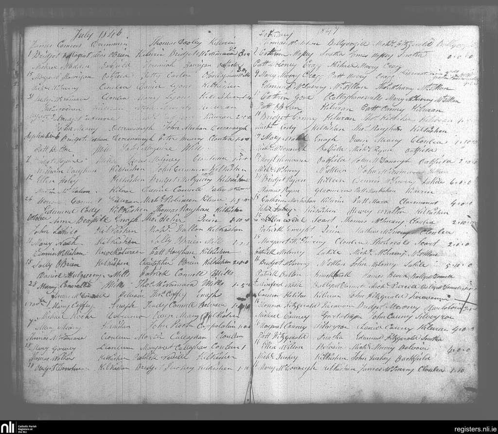 O'Callaghan's Mills; County of Clare; Diocese of Killaloe. Marriages, July 1846 to Feb. 1847