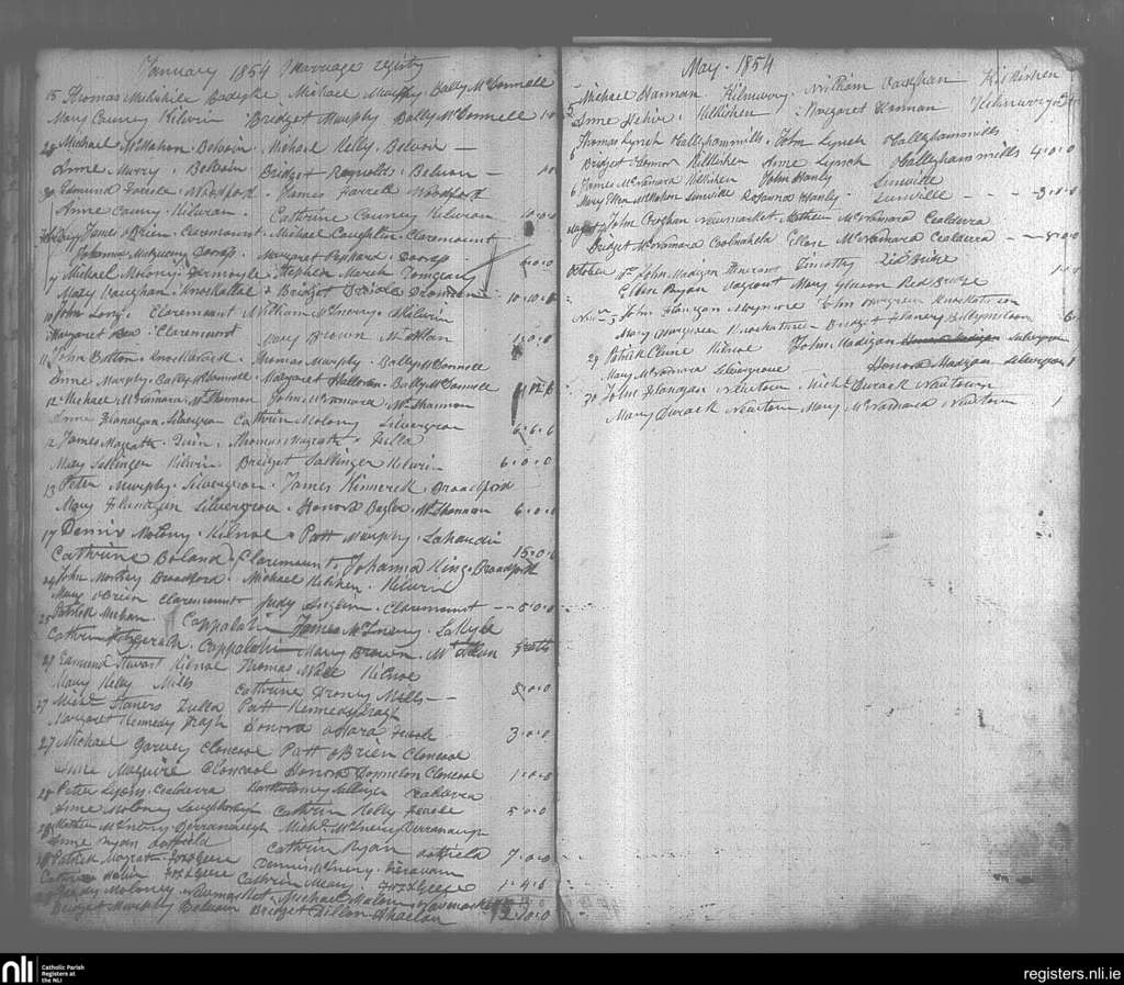 O'Callaghan's Mills; County of Clare; Diocese of Killaloe. Marriages, Jan. 1854 to Nov. 1854