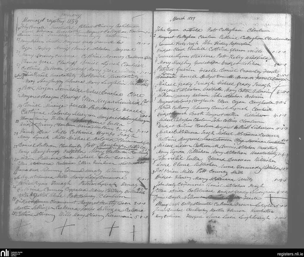 O'Callaghan's Mills; County of Clare; Diocese of Killaloe. Marriages, Jan. 1859 to Mar. 1859