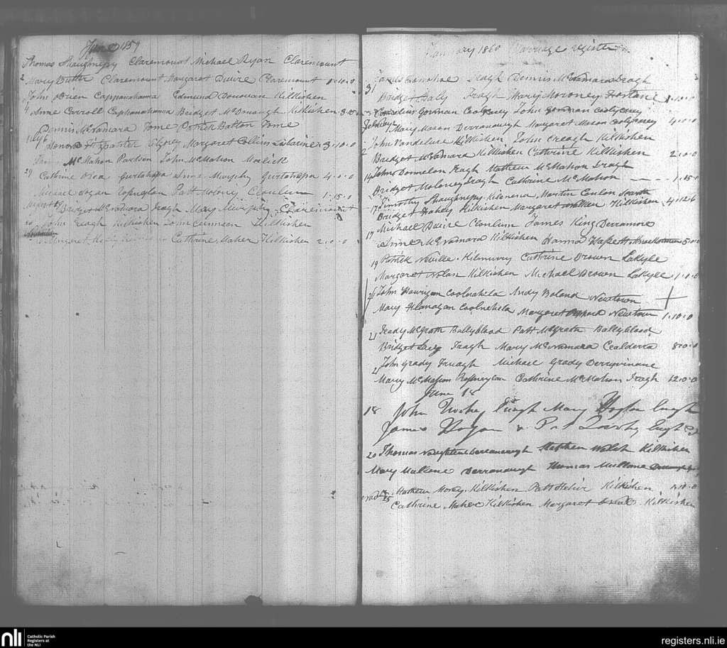 O'Callaghan's Mills; County of Clare; Diocese of Killaloe. Marriages, June 1859 to Nov. 1860