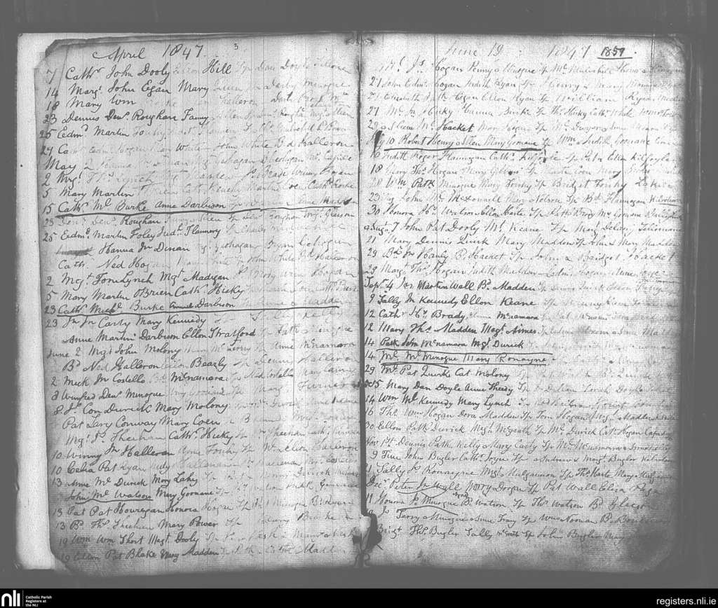 Clonrush; County of Galway, Clare; Diocese of Killaloe. Baptisms, Apr. 1847 to Dec. 1847