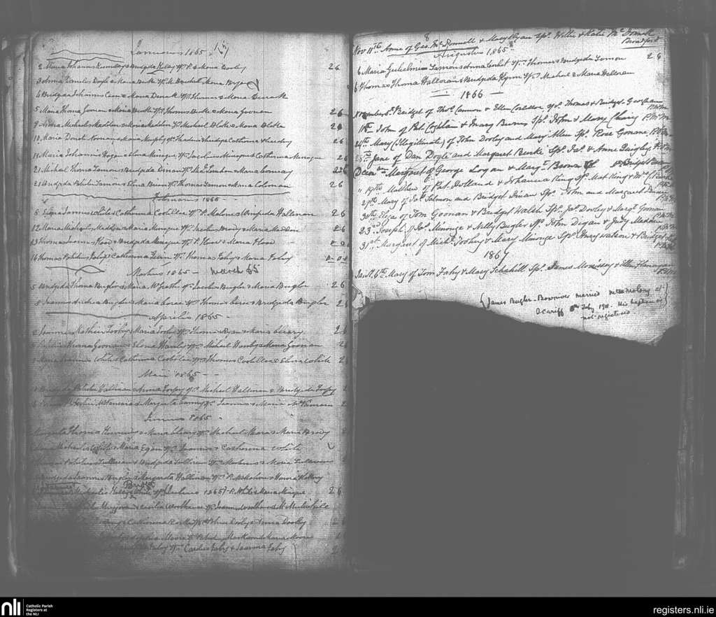 Clonrush; County of Galway, Clare; Diocese of Killaloe. Baptisms, Marriages, Jan. 1865 to Feb. 1911