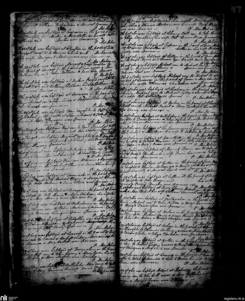 Quin; County of Clare; Diocese of Killaloe. Baptisms, July 1816 to Sep. 1816