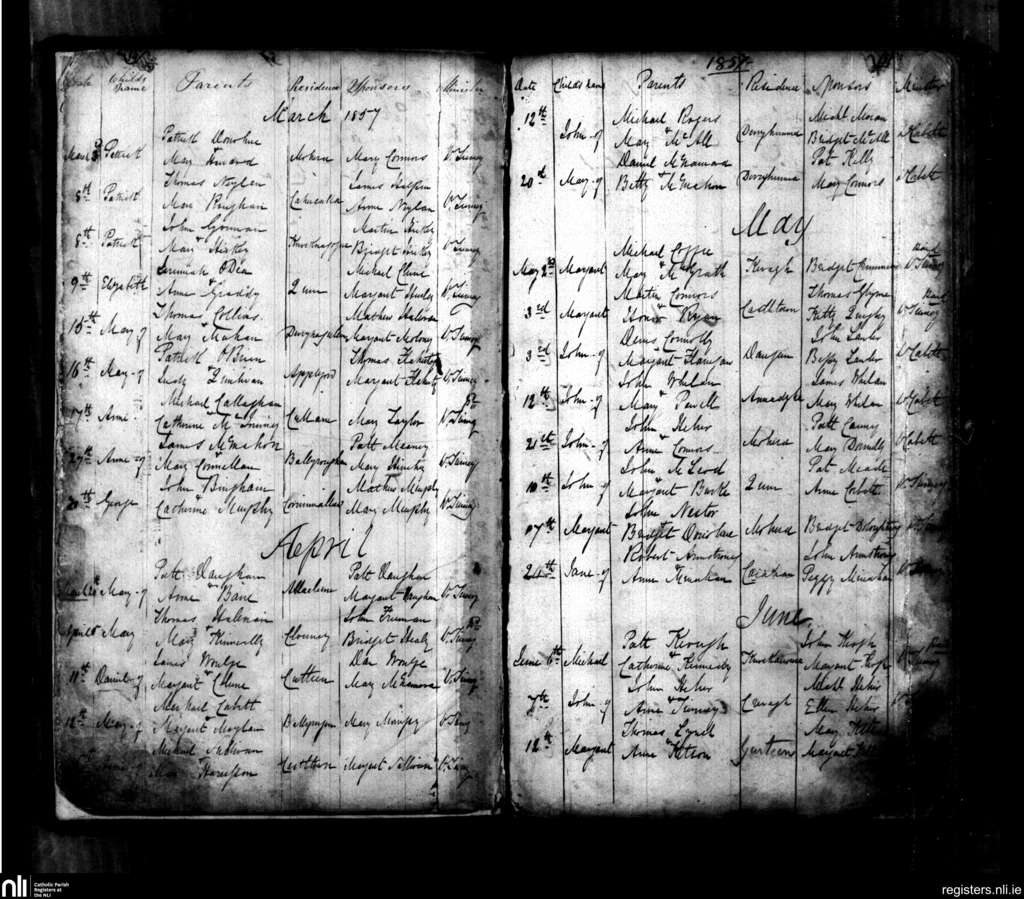 Quin; County of Clare; Diocese of Killaloe. Baptisms, Mar. 1857 to June 1857
