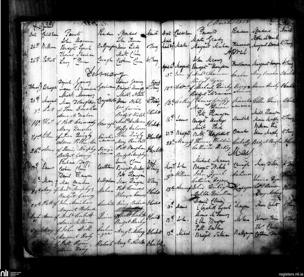 Quin; County of Clare; Diocese of Killaloe. Baptisms, Jan. 1858 to May 1858