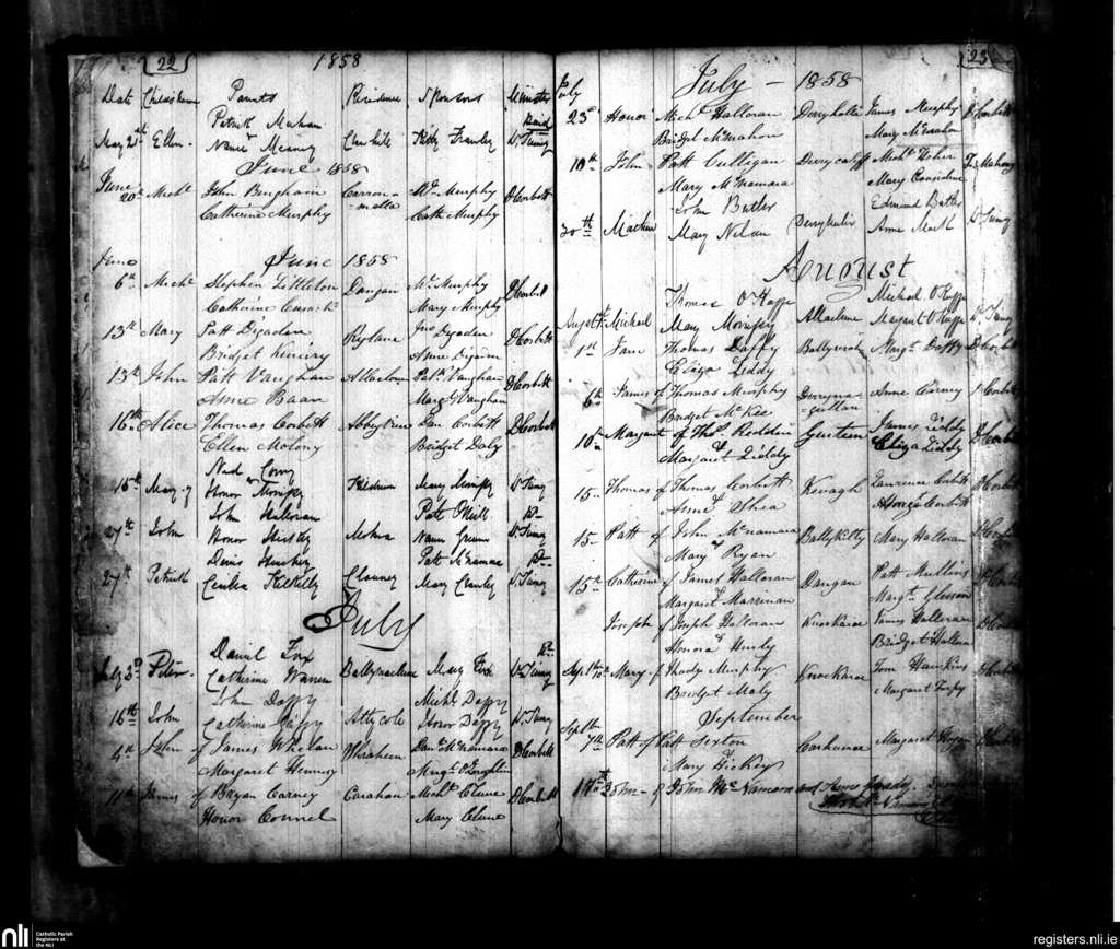 Quin; County of Clare; Diocese of Killaloe. Baptisms, May 1858 to Sep. 1858