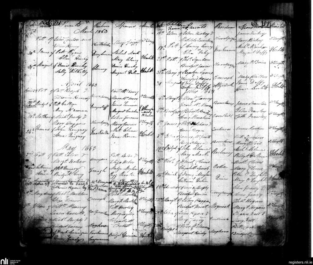 Quin; County of Clare; Diocese of Killaloe. Baptisms, Mar. 1863 to June 1863