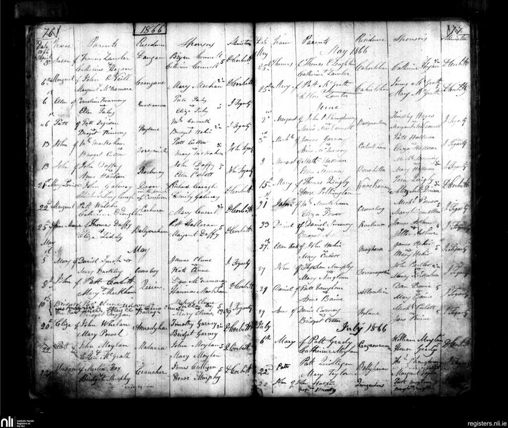 Quin; County of Clare; Diocese of Killaloe. Baptisms, Apr. 1866 to July 1866