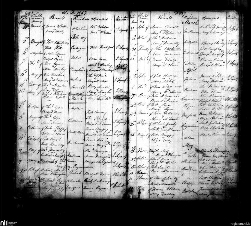 Quin; County of Clare; Diocese of Killaloe. Baptisms, Jan. 1867 to May 1867