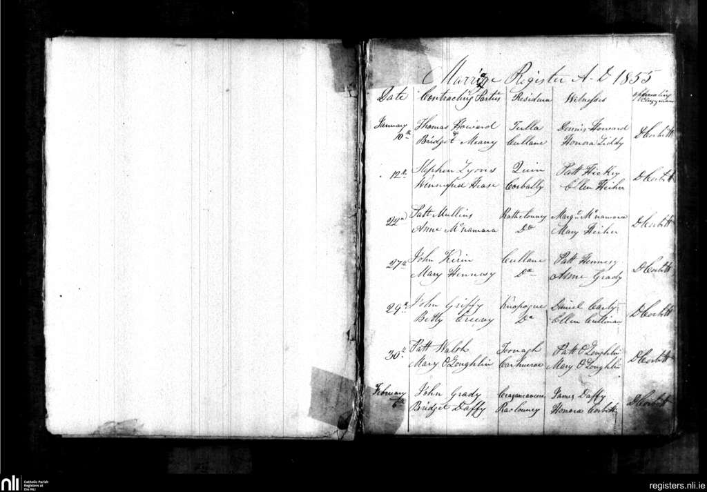 Quin; County of Clare; Diocese of Killaloe. Marriages, Jan. 1855 to Feb. 1855