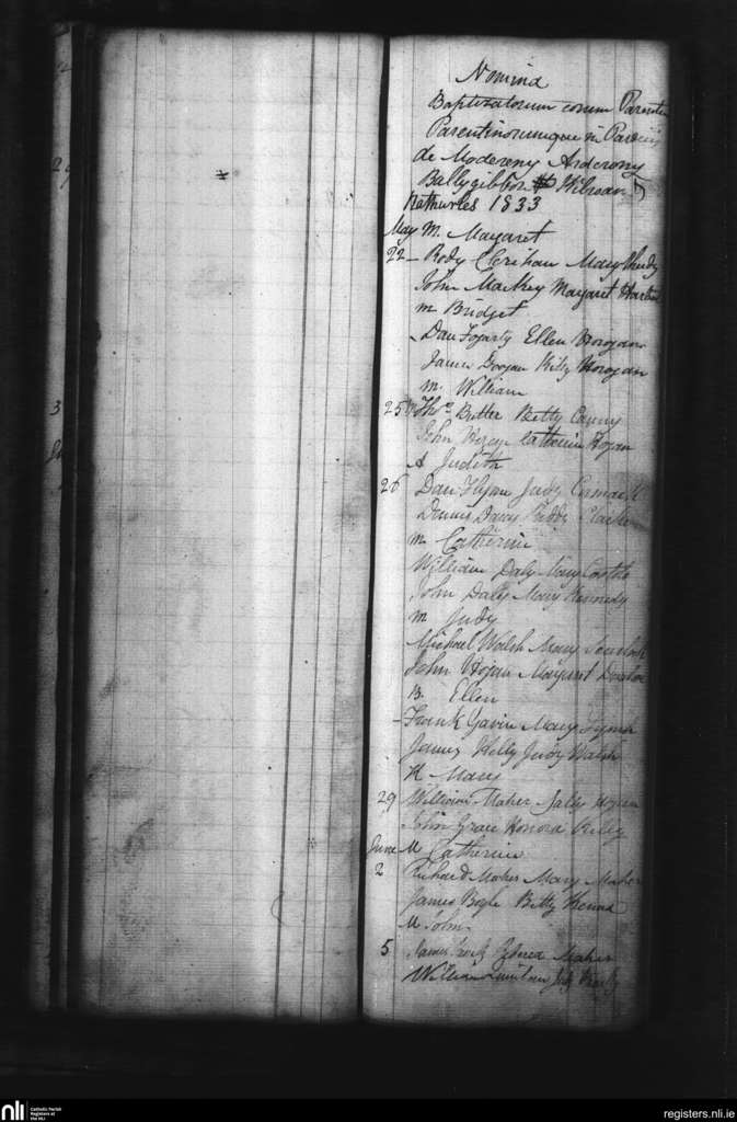 Cloughjordan; County of Tipperary; Diocese of Killaloe. Baptisms, May 1833 to June 1833