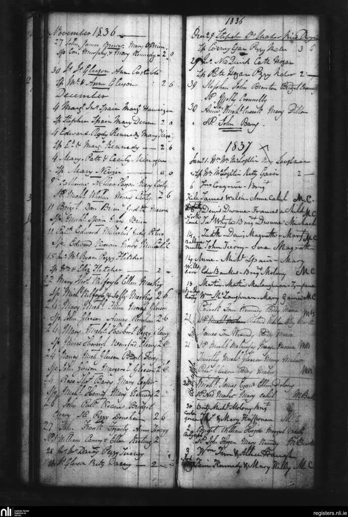 Cloughjordan; County of Tipperary; Diocese of Killaloe. Baptisms, Nov. 1836 to Feb. 1837