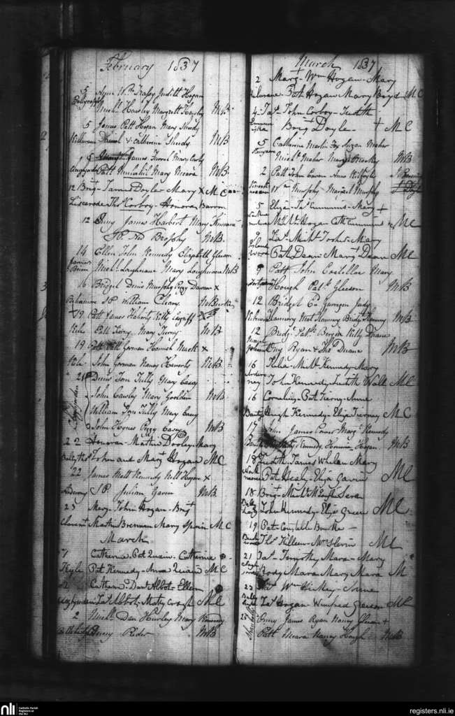 Cloughjordan; County of Tipperary; Diocese of Killaloe. Baptisms, Feb. 1837 to Mar. 1837