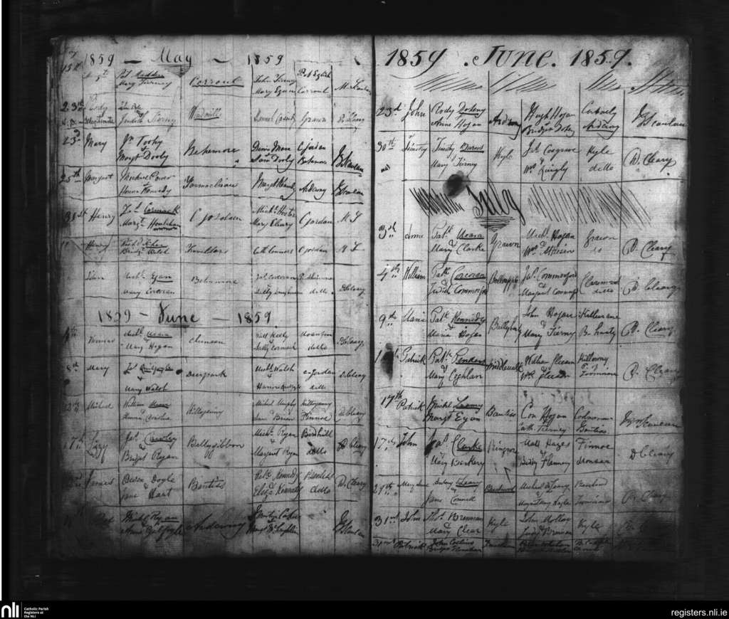 Cloughjordan; County of Tipperary; Diocese of Killaloe. Baptisms, May 1859 to July 1859