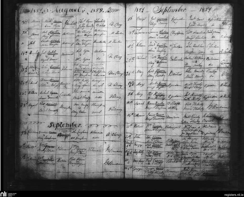 Cloughjordan; County of Tipperary; Diocese of Killaloe. Baptisms, Aug. 1859 to Nov. 1859