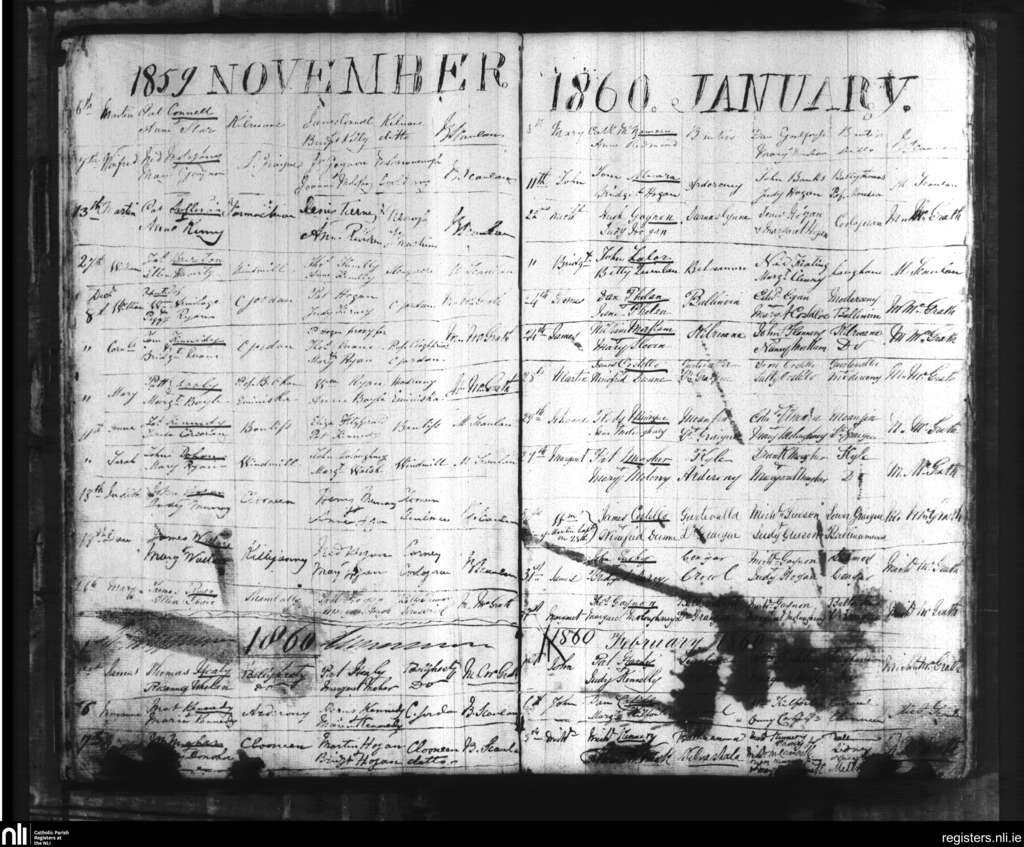 Cloughjordan; County of Tipperary; Diocese of Killaloe. Baptisms, Nov. 1859 to Feb. 1860