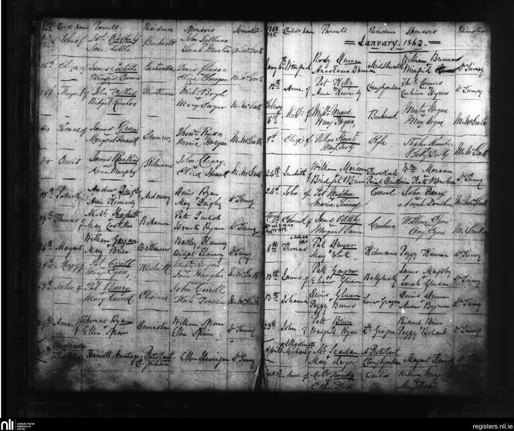 Cloughjordan; County of Tipperary; Diocese of Killaloe. Baptisms, Dec. 1861 to Apr. 1862