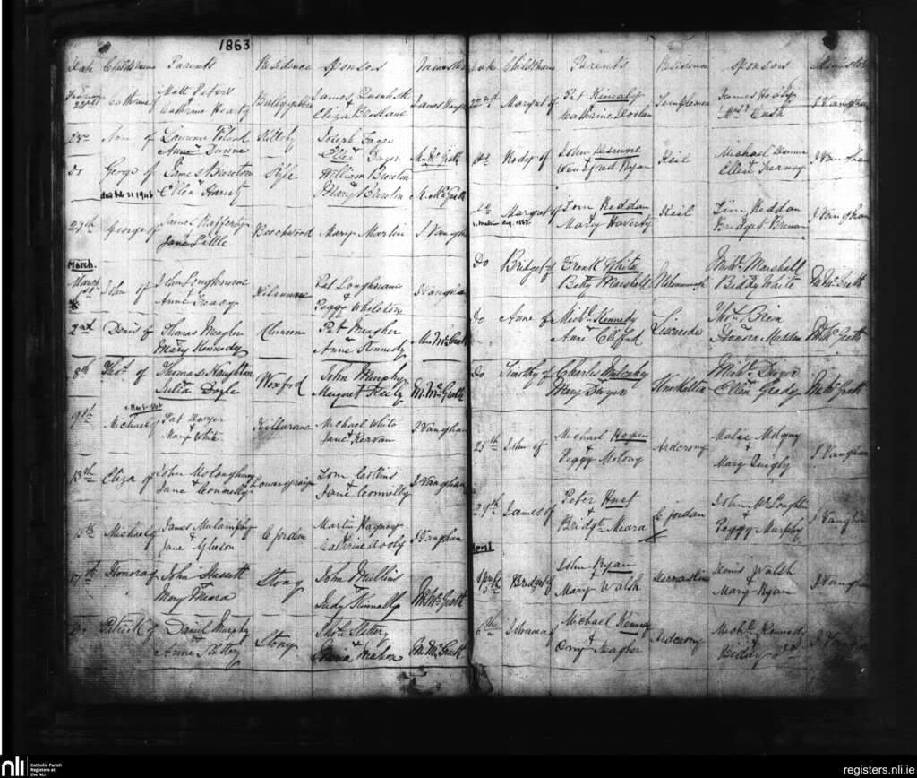 Cloughjordan; County of Tipperary; Diocese of Killaloe. Baptisms, Feb. 1863 to Apr. 1863