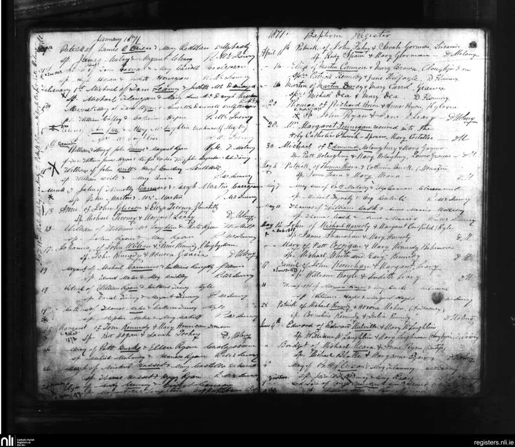 Cloughjordan; County of Tipperary; Diocese of Killaloe. Baptisms, Jan. 1871 to June 1871