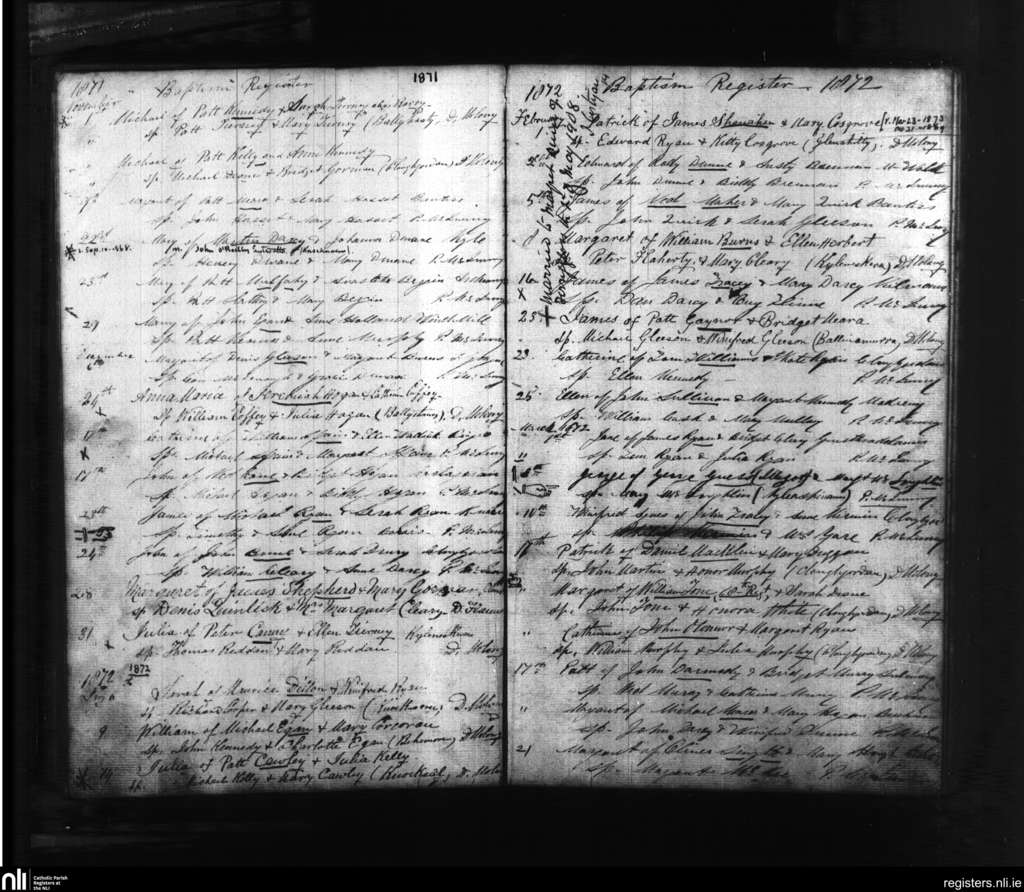 Cloughjordan; County of Tipperary; Diocese of Killaloe. Baptisms, Nov. 1871 to Mar. 1872