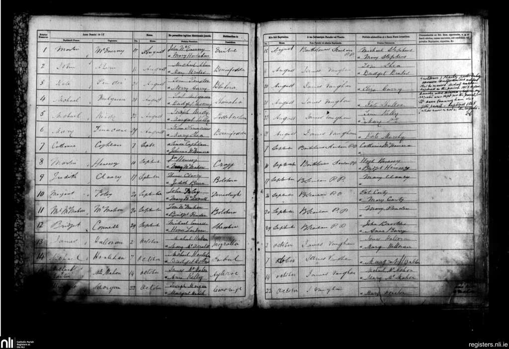 Kilfiddane; County of Clare; Diocese of Killaloe. Baptisms, Aug. 1868 to Oct. 1868