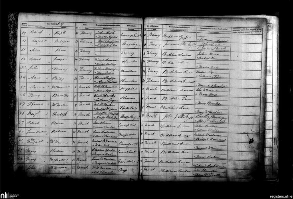 Kilfiddane; County of Clare; Diocese of Killaloe. Baptisms, Feb. 1869 to Mar. 1869