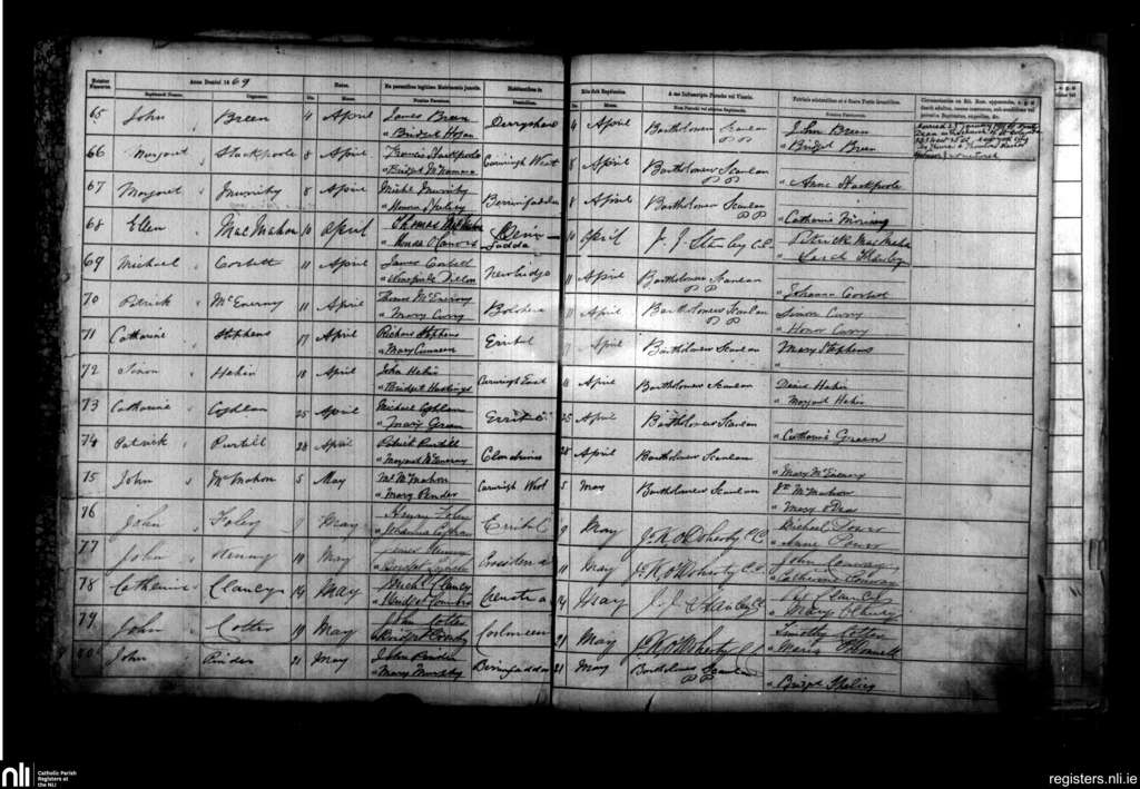 Kilfiddane; County of Clare; Diocese of Killaloe. Baptisms, Apr. 1869 to May 1869