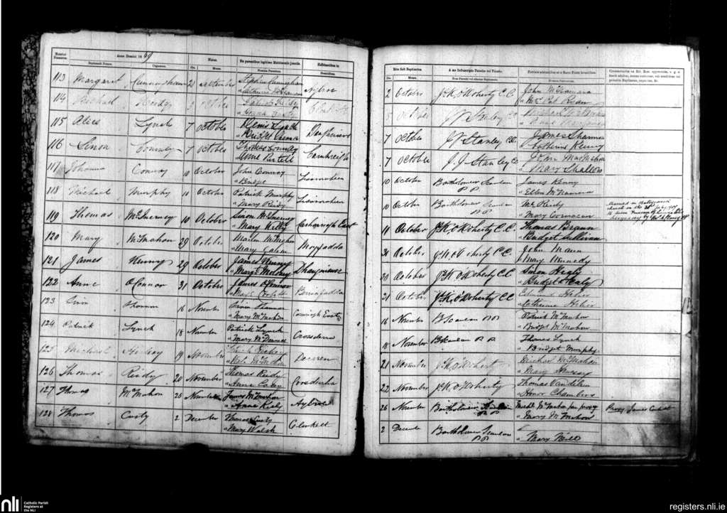 Kilfiddane; County of Clare; Diocese of Killaloe. Baptisms, Oct. 1869 to Dec. 1869