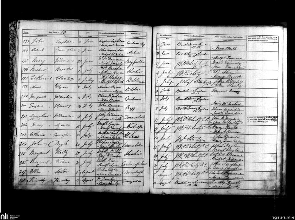 Kilfiddane; County of Clare; Diocese of Killaloe. Baptisms, June 1870 to Aug. 1870