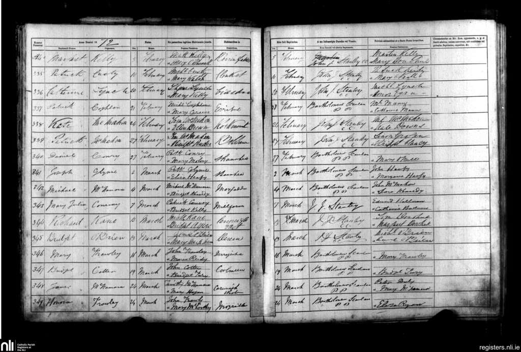 Kilfiddane; County of Clare; Diocese of Killaloe. Baptisms, Feb. 1872 to Mar. 1872