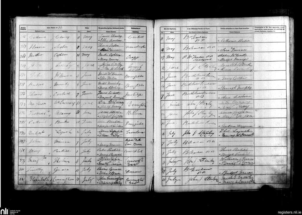 Kilfiddane; County of Clare; Diocese of Killaloe. Baptisms, May 1872 to July 1872