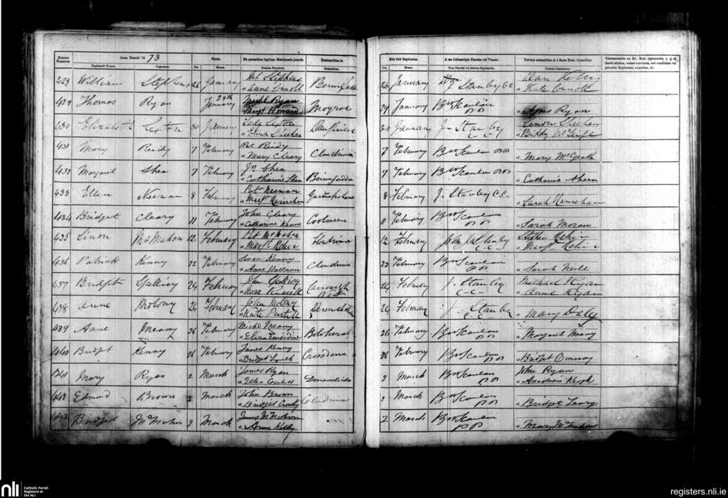 Kilfiddane; County of Clare; Diocese of Killaloe. Baptisms, Jan. 1873 to Mar. 1873