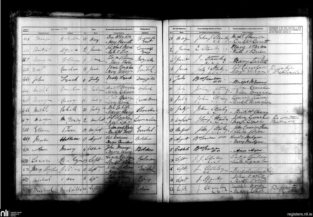 Kilfiddane; County of Clare; Diocese of Killaloe. Baptisms, May 1873 to Sep. 1873