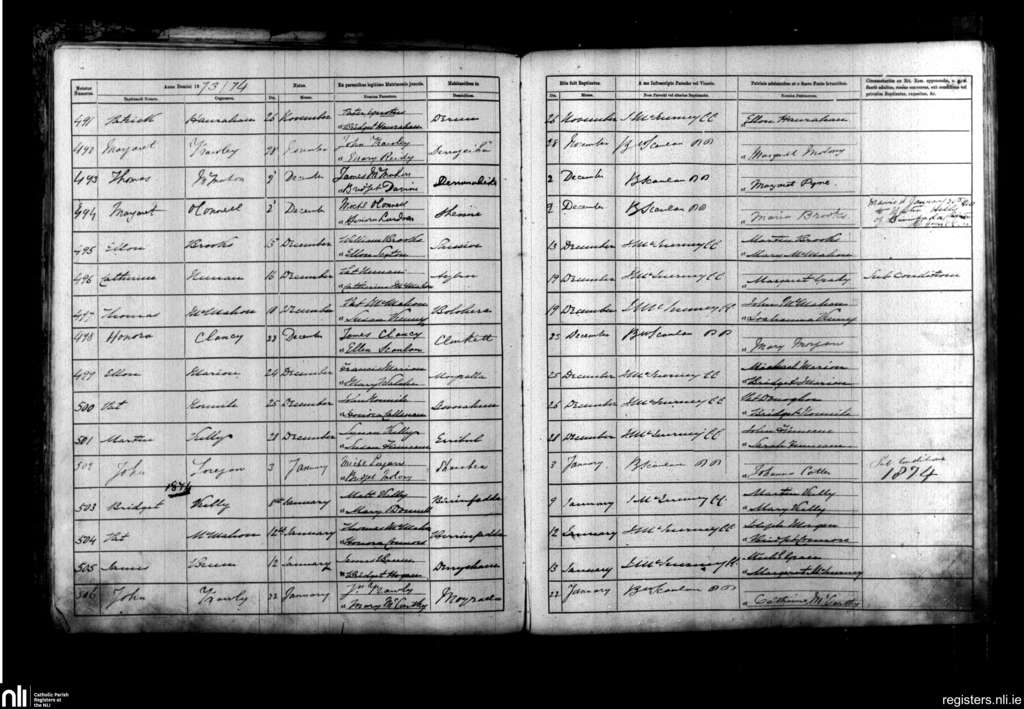 Kilfiddane; County of Clare; Diocese of Killaloe. Baptisms, Nov. 1873 to Jan. 1874