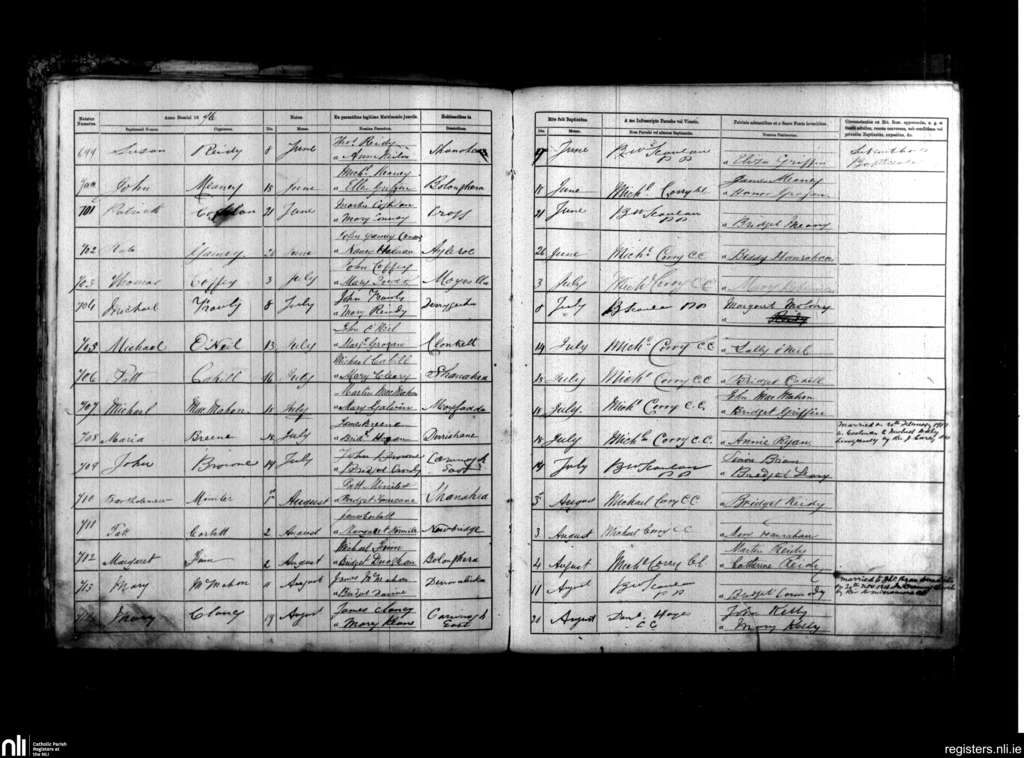 Kilfiddane; County of Clare; Diocese of Killaloe. Baptisms, June 1876 to Aug. 1876