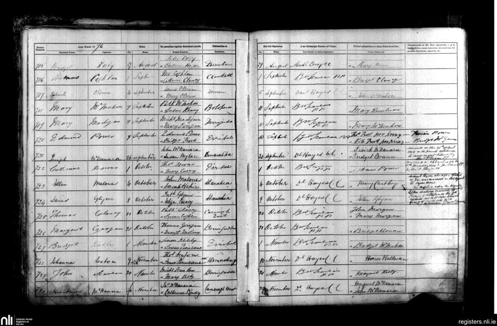 Kilfiddane; County of Clare; Diocese of Killaloe. Baptisms, Aug. 1876 to Nov. 1876