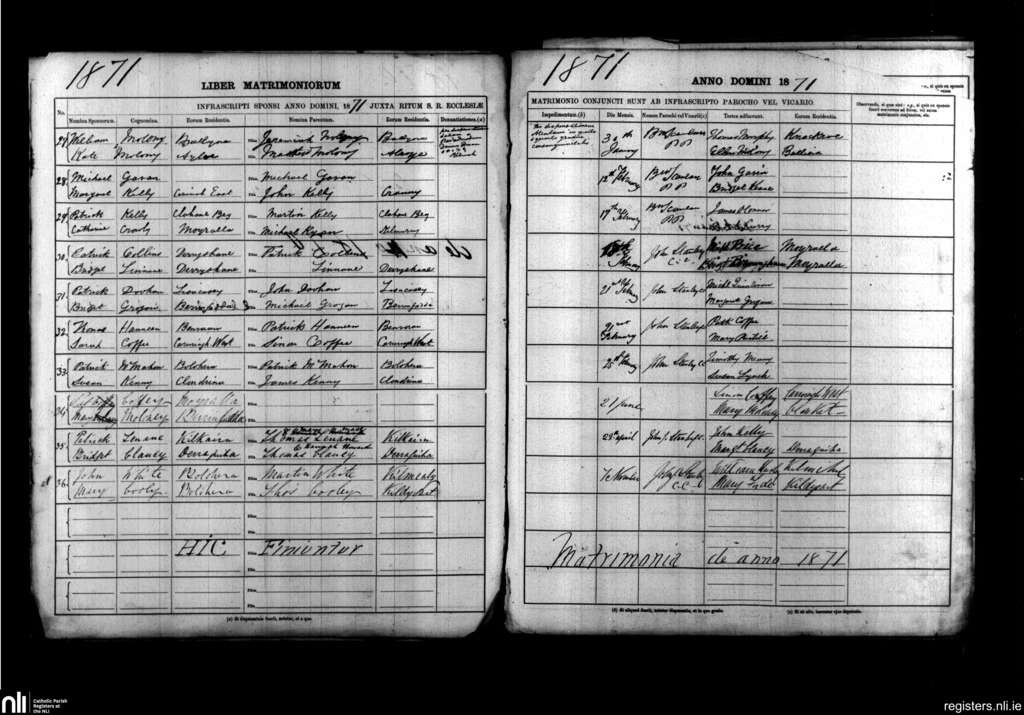 Kilfiddane; County of Clare; Diocese of Killaloe. Marriages, Jan. 1871 to Nov. 1871