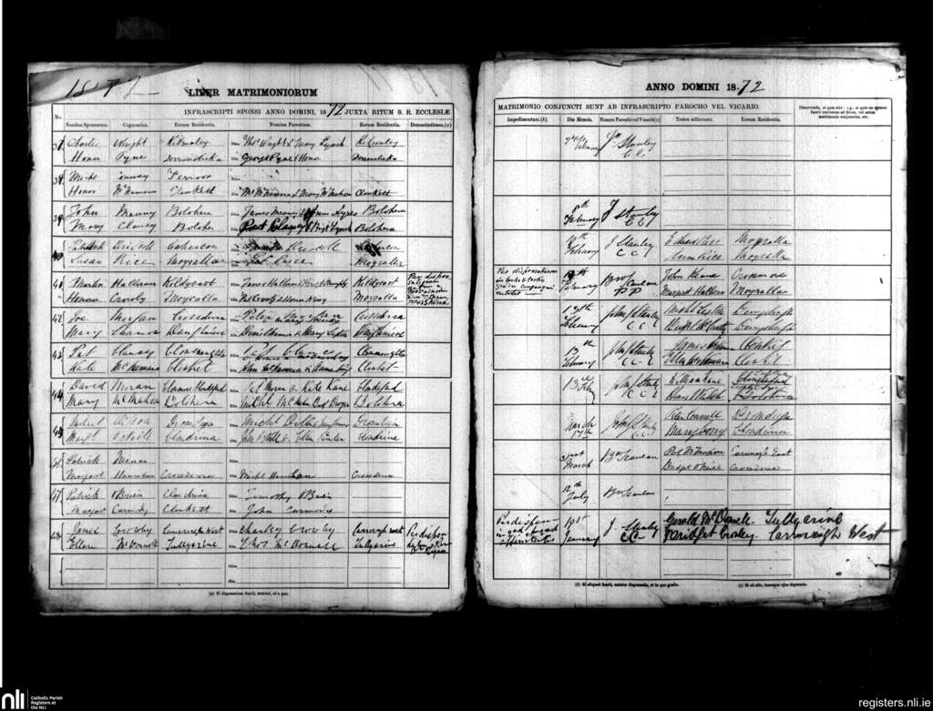 Kilfiddane; County of Clare; Diocese of Killaloe. Marriages, Feb. 1872 to Jan. 1873