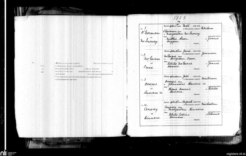 Kilmacduane; County of Clare; Diocese of Killaloe. Marriages, May 1853 to Aug. 1853