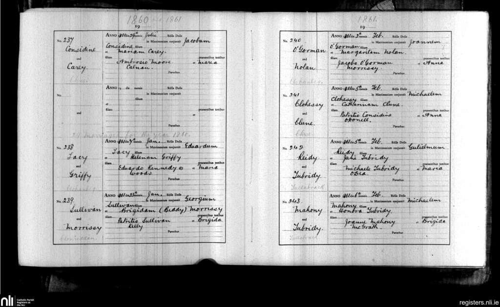 Kilmacduane; County of Clare; Diocese of Killaloe. Marriages, July 1860 to Feb. 1861