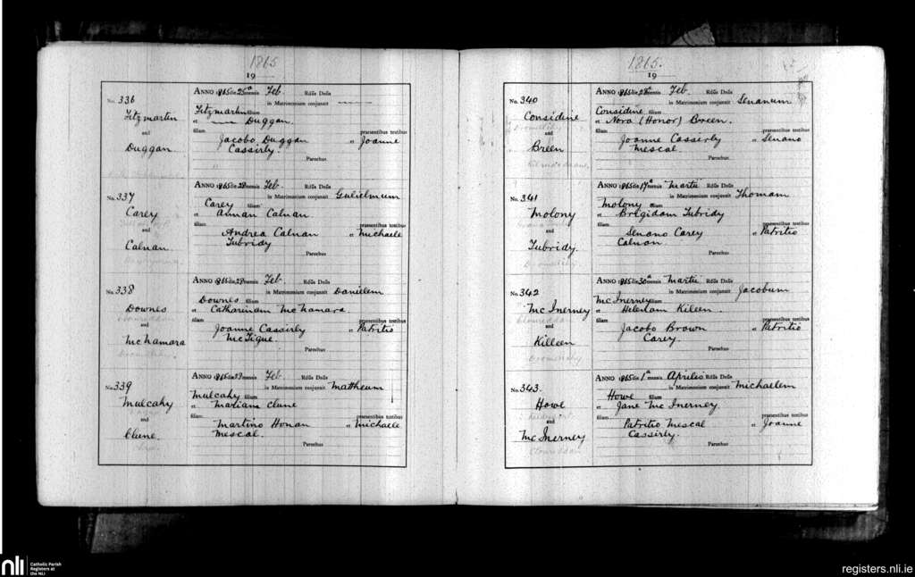 Kilmacduane; County of Clare; Diocese of Killaloe. Marriages, Feb. 1865 to Apr. 1865