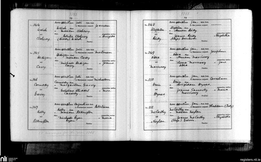 Kilmacduane; County of Clare; Diocese of Killaloe. Marriages, July 1865 to Jan. 1866