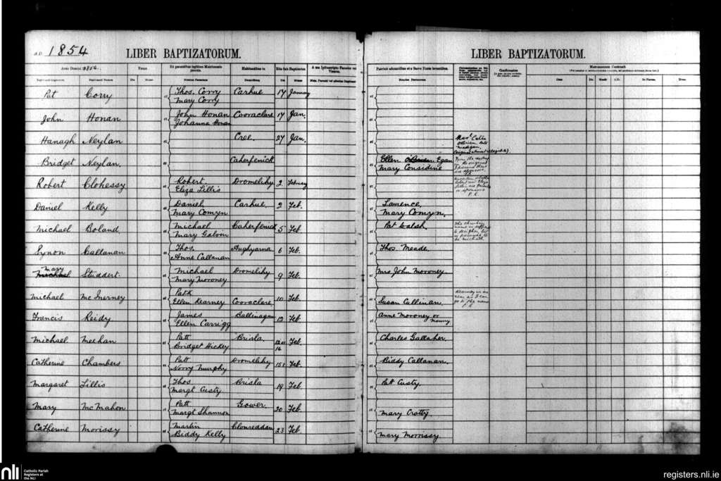 Kilmacduane; County of Clare; Diocese of Killaloe. Baptisms, Jan. 1854 to Feb. 1854